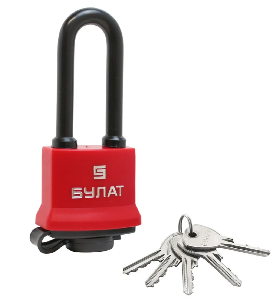 Замок навесной «БУЛАТ» предназначен для запирания, распределительных щитов, почтовых ящиков, гаражей, складов, подвалов и прочих помещений. Замок запирается автоматически при нажатии на скобу без использования ключа. Пластиковый кожух защищает замок от внешнего воздействия окружающей среды. Замок обладает длительным сроком эксплуатации. Гарантийный срок 5 лет с момента продажи через розничную сеть.