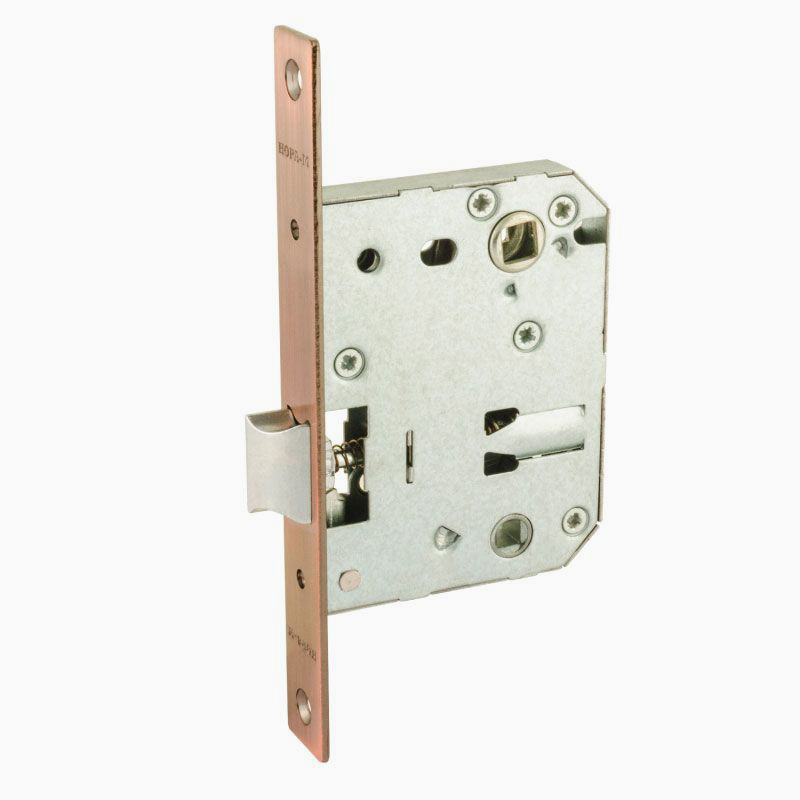 Внутренний механизм 2070-70 мм АС (ст.медь) производства российского бренда "Нора-М" для различных деревянных межкомнатных дверей. В качестве материала корпуса выбрана сталь и сплав ЦАМ. Размеры врезной части 96.5х71 мм. Установка производится с помощью двух монтажных отверстий. Дополнительное запирание отсутствует. Удаление квадрата под ручку - 50 мм. Элементы крепежа входят в комплектацию. Товар упакован в индивидуальную картонную коробку с крепежными элементами.