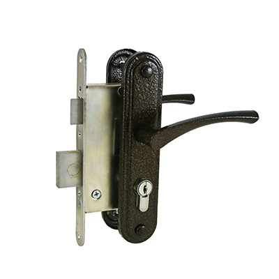 Замок врезной с ручками, цилиндровый. Предназначен для установки в деревянные двери толщиной 40-50мм, правого и левого открывания. Стальной оцинкованный корпус. Прямоугольный ригель из цинкового сплава, вылет 22мм. Межосевое расстояние 55мм. Удаление ключевого отверстия 55мм. Габаритный размер 85х130 мм. Ручки - алюминиевый сплав, покрытие - краска. Комплектуется цилиндровым механизмом 70мм с 4 ключами, ответной планкой и стяжками.