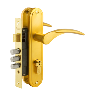 Замок врезной цилиндровый с тремя ригелемя, растояние между ручкой и центром цилиндра 62 мм, Удаление ключевого отверстия (backset)- 40 мм длина цилиндра - 60 мм ( цилиндр - Л60 ), 5 ключей. Комплектуется фалевыми ручками на стяжных винтах. Корпус замка 110х65 мм, лицевая планка - 160 мм. Материал ручек на планке - СИЛУМИН.