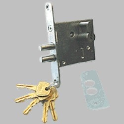 Врезной 6-ти сувальдный замок. 3 ригеля ф12мм. / 3 класс / В комплект входят декоративные накладки со шторкой - (цвет - никель.) без ответной планки