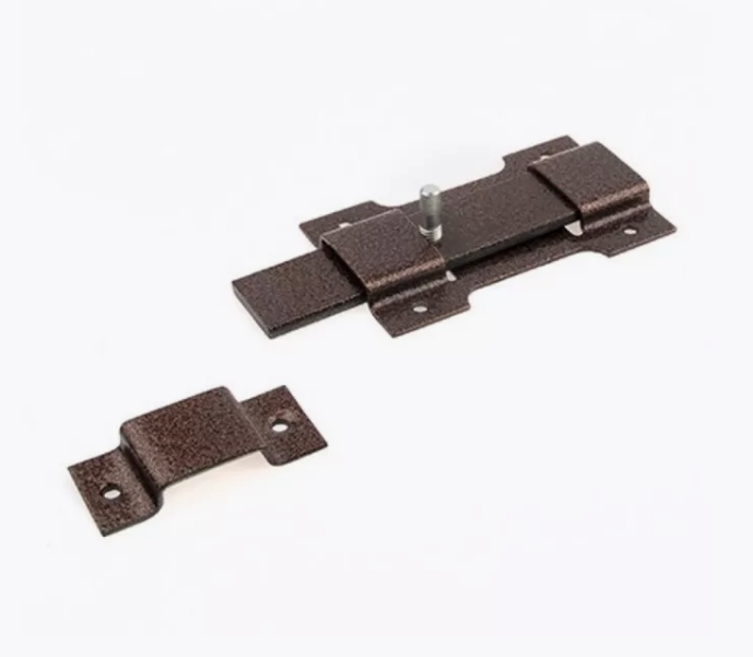 Засов накладной для деревянных и металлических дверей. Материал - сталь, полимерное покрытие. Габариты корпуса - 115х70 мм, 4 крепежных отверстия. Плоский ригель с вылетом 35 мм. В комплекте ответная планка размерами 25х70 мм.